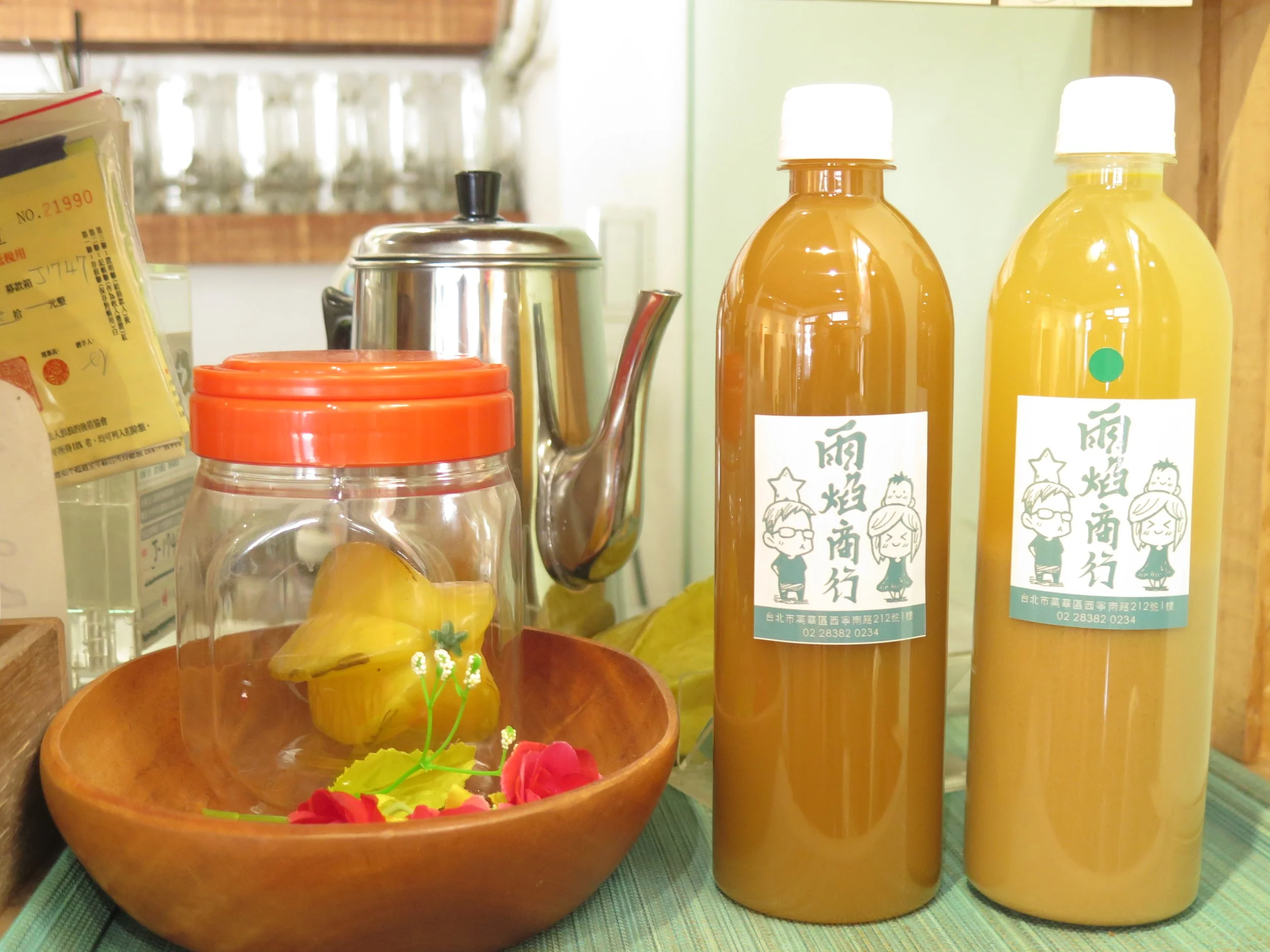 那時我們夫妻倆正處工作轉換期,考慮要創業或者再找一份工作時,看到丈母娘楊桃汁生意這麼好,我們兩人想說也試試看開一間店。原本打算開在永和,但第一次創業怕怕的,永和店租不便宜,便宜的地點都在難找的小巷子內。丈母娘曾說,有些店面一踏進去,你就可以想像得到,要開怎樣的一間店;就在我們找店面找了大約一年多,看到這家店面釋出,一看立馬就決定承租下來。開店前太太本來就有跟媽媽賣過一段時間的楊桃汁,加上原本我們就有喝咖啡習慣,成立了「IM 雨焰商行 x 阿波伯楊桃」。